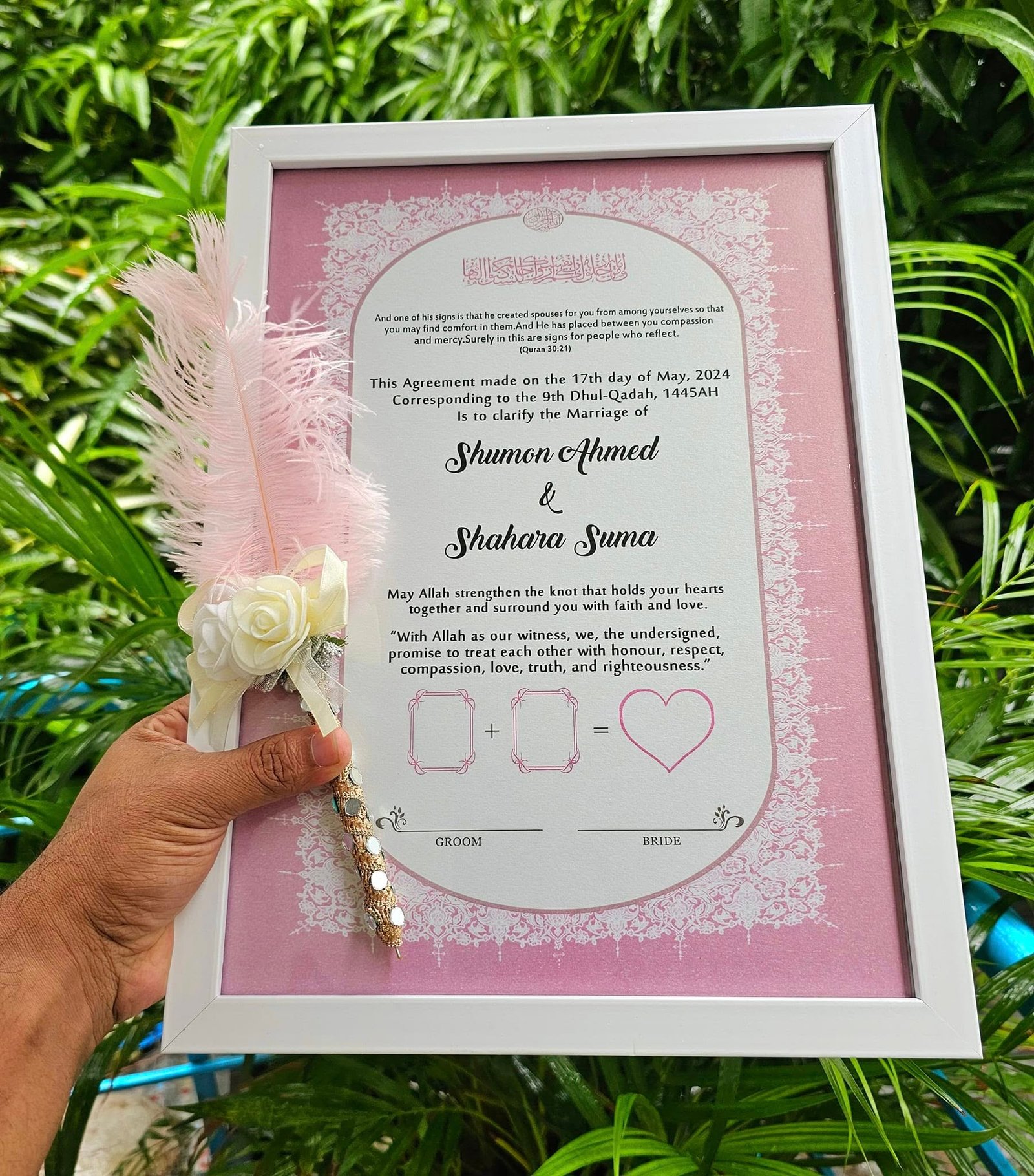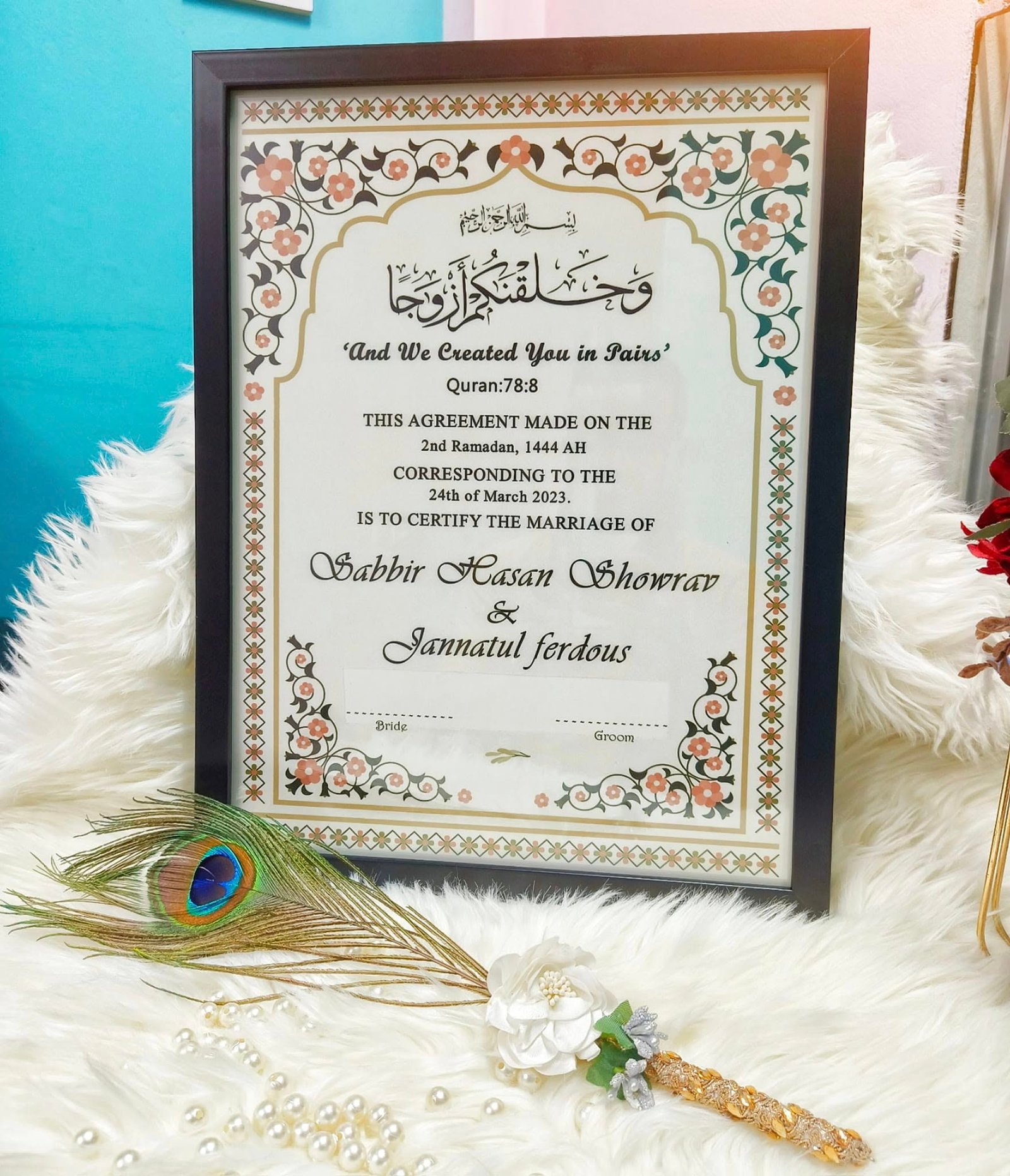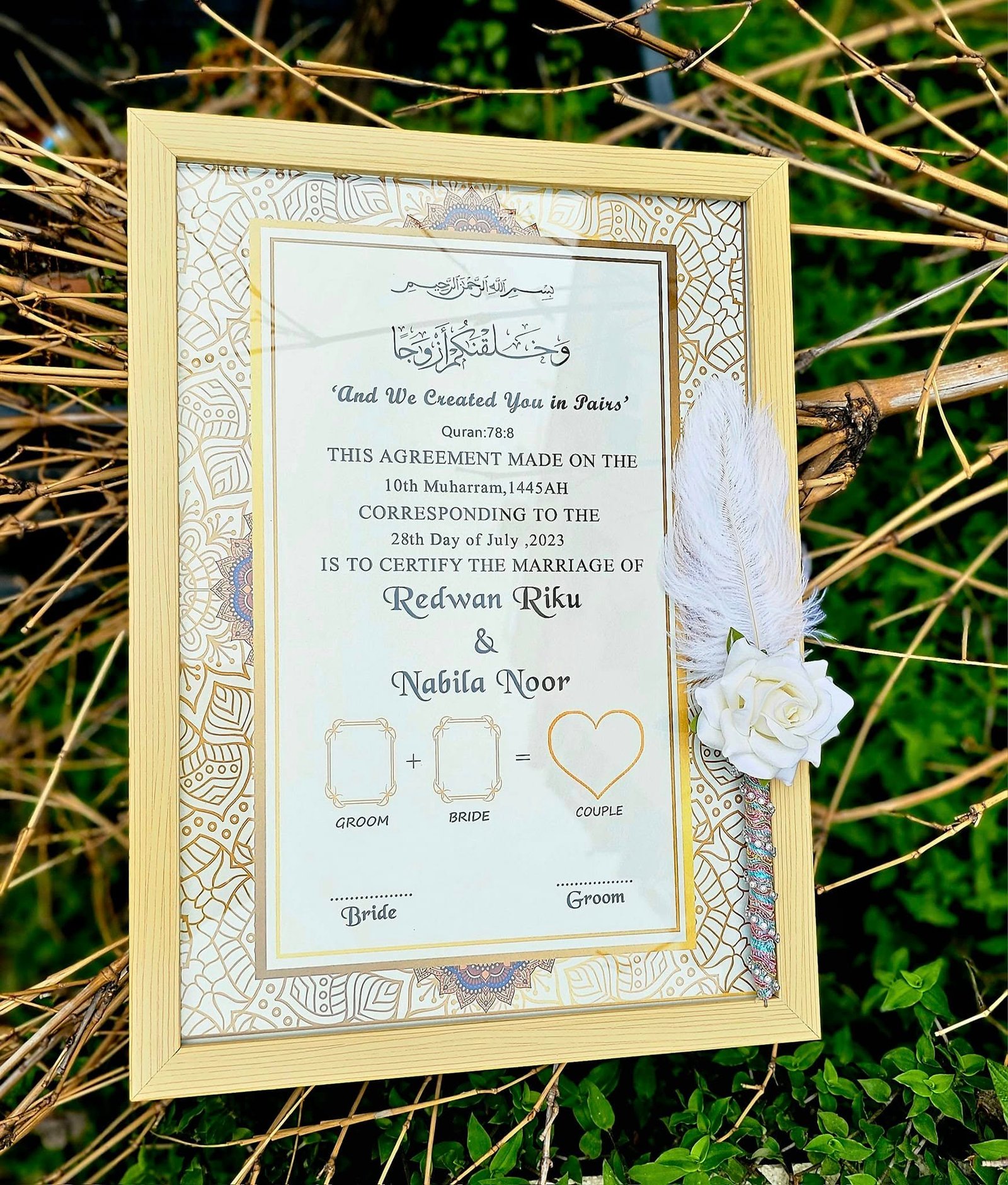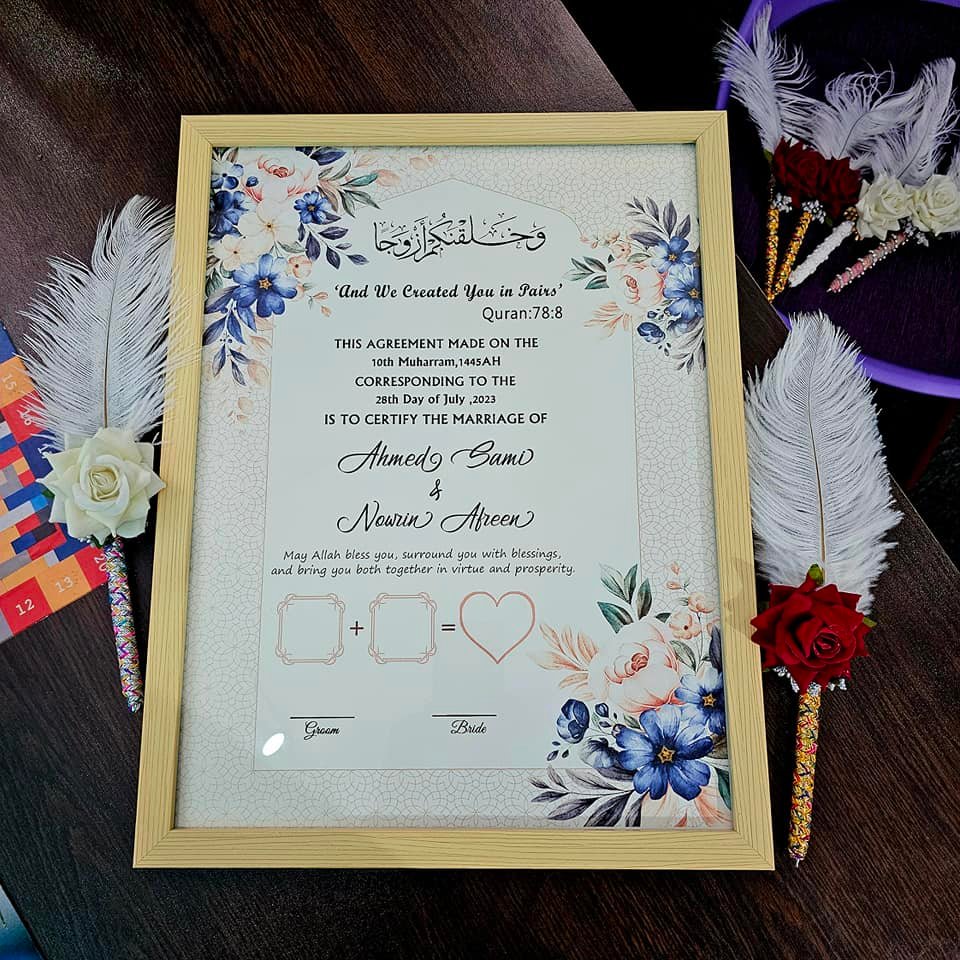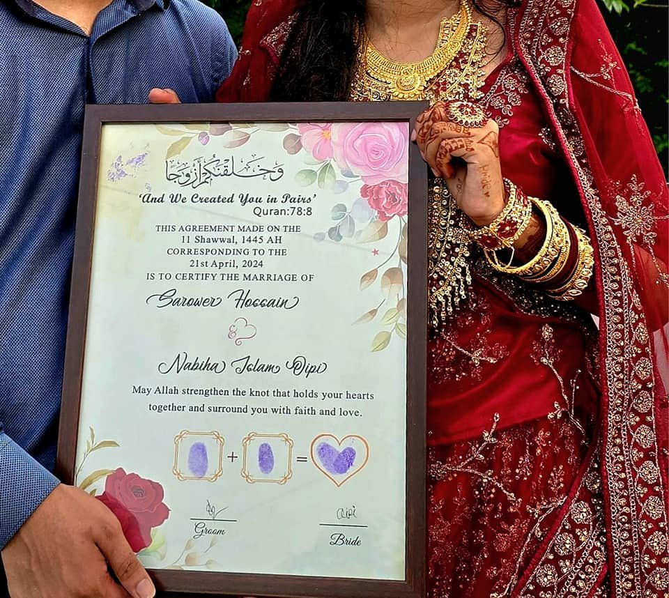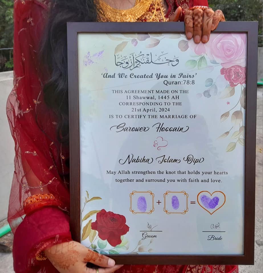 • চিরস্মরণীয় স্মৃতিচিহ্ন: সাধারণ কাগজের নিকাহনামার বদলে এটি একটি সুন্দর স্মৃতিচিহ্ন হিসেবে আপনার বাড়িতে বছরের পর বছর সাজিয়ে রাখা যাবে।